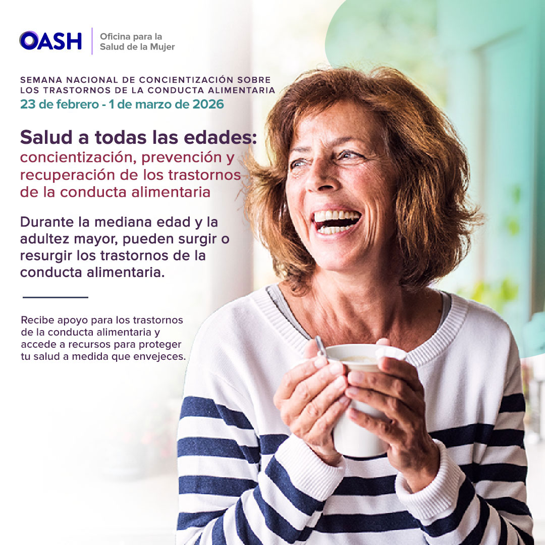 La OWH ha desarrollado una hoja informativa educativa que ofrece un resumen de la transición a través de la menopausia, describe los trastornos de la conducta alimentaria y los desórdenes alimentarios, detalla la relación entre la menopausia y los trastornos de la conducta alimentaria, y proporciona recursos de apoyo y tratamiento para los trastornos alimentarios. Accede a la hoja informativa usando el siguiente enlace.